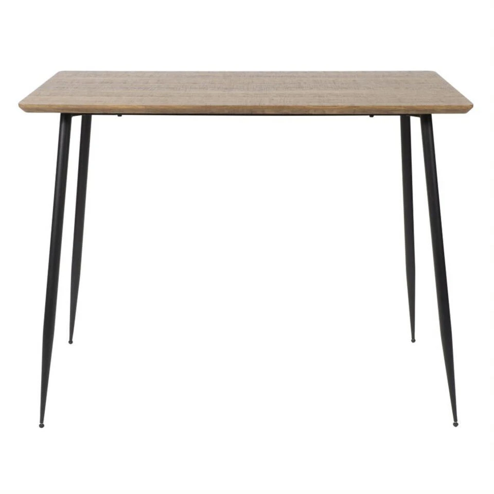Deze bartafel is uitgevoerd in MDF met een dun decorlaagje in eiken brownwash. Deze laag heeft bovendien een mooie 3D-structuur, waardoor het nauwelijks van echt hout is te onderscheiden. De tafel is voorzien van 4 tapse poten in zwart poedercoat.